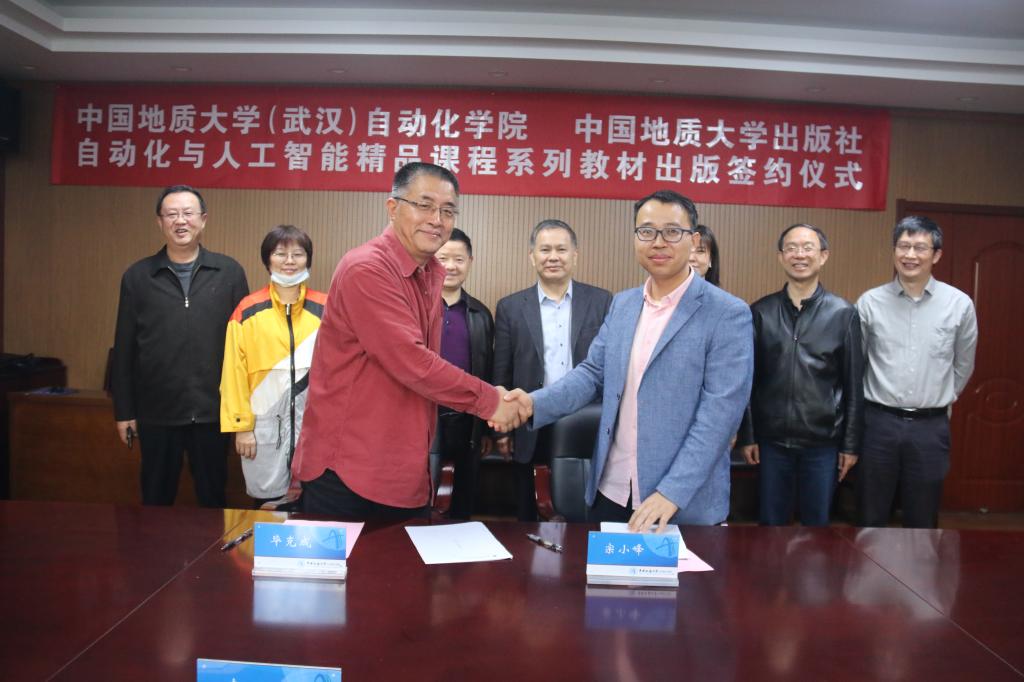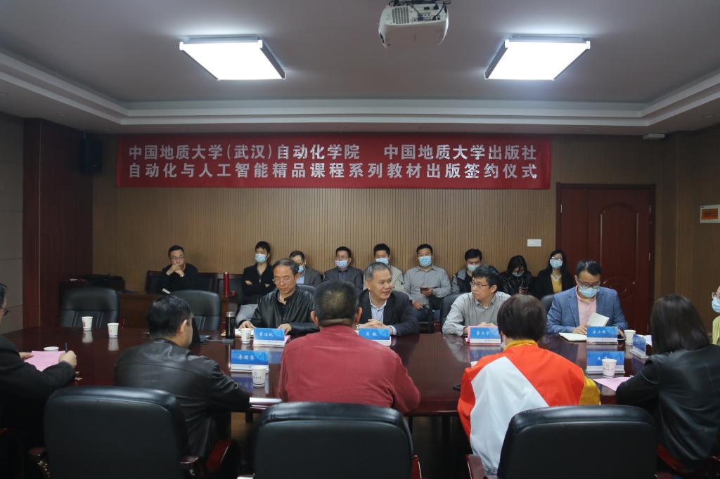 1110日,必赢官网组织建设的自动化与人工智能精品课程系列教材出版签约仪式在信息楼316会议室举行。中国地质大学出版社党委书记兼总编辑李国昌、社长毕克成等领导及相关负责人,中国地质大学教务处副处长王莹,必赢线路检测3003no1院长吴敏、常务副院长曹卫华、副院长宗小峰,以及教材编撰教师出席了签字仪式。签约仪式由必赢线路检测3003no1党委书记董浩斌主持。