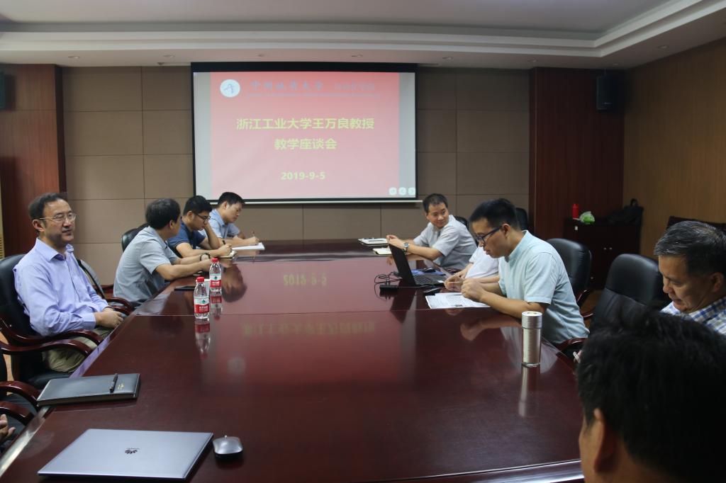 9月5日上午,浙江工业大学王万良教授应邀来必赢官网进行教学研究交流,举行了教学座谈会。