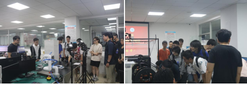 师生交流会结束后,同学们在范海鹏老师的带领下,参观了必赢线路检测3003no1的实验室,在“小派”导览机器人、研究生学长学姐们的讲解下,同学们具体地了解了每一个实验室的研究方向及研究成果,感受到了学院的研究氛围,对学院产生了浓厚的兴趣。