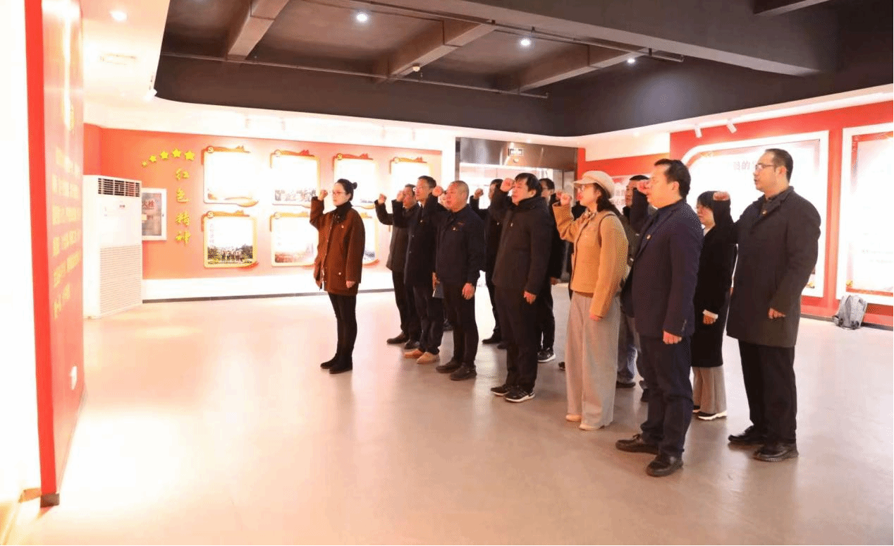 朱荆萨书记一行先后参观了健民药业智能生产线与自动化煎药中心、黄鹤楼酒业酿酒车间、武汉基金产业基地,并带领全体党员面向党旗庄严宣誓,重温入党誓词。