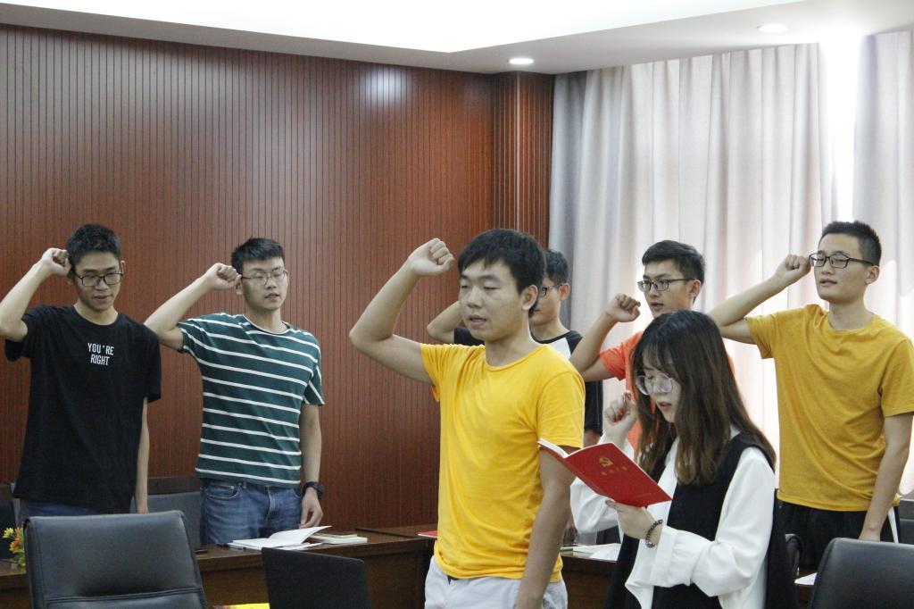 活动开始,全体党员起立,齐唱中华人民共和国国歌,并重温入党誓词。支部书记王祥国同志代表党支部向新生党员表示欢迎,并详细介绍了党支部的情况,以便新生党员尽快熟悉新环境、融入新集体。随后王祥国同志带领大家学习党章第五章的内容,主要涉及党的基层组织结构等知识,明确了接下来的学习任务和目标。接着,党支部开展了“不忘初心、牢记使命”主题教育动员会,对全体党员设岗定责并部署相应工作,大家都展现了良好的精神面貌,表示将积极参与其中,认真完成组织分配的任务。随后,全体党员共同观看祖国70年成就系列短片,并以此为基础开展了“强化理想信念,牢记初心使命”专题学习活动。在讨论环节,支部成员踊跃发言,分享祖国七十年取得的辉煌成就带给自己的感动,明确今后的奋斗目标,强化报国初心,坚定为祖国奉献的理想信念。