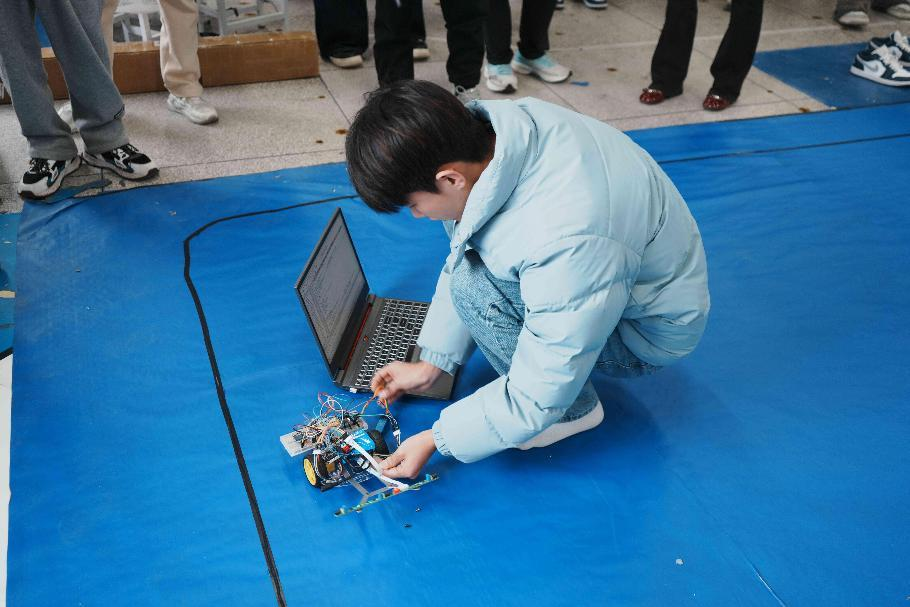2024年12月5日16时47分,随着最后一辆智能小车顺利冲线,第五届“走进自动化”新工科创新人才培养实践工程之“风磁电车”大赛决赛在教三楼603实验室完满落下帷幕。
