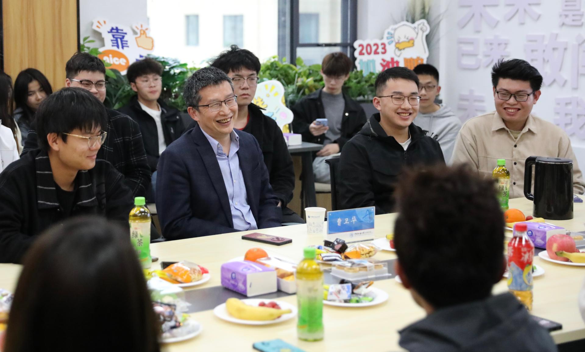 活动在悠扬的音乐中拉开序幕。曹卫华首先向同学们表达了亲切的问候,并结合自己青年时期的求学经历、考研经历和科研经历向同学们进行分享,也就同学们近期关心关注的问题一一进行了详细解答,给出可行性建议。在轻松愉悦的氛围中,同学们也打开了话匣子,倾诉自己在学业发展、职业规划、创新实践、科研方向等方面的经历和想法,现场氛围温馨而热烈。