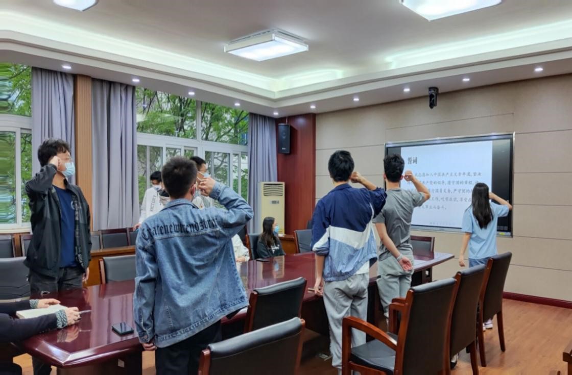 会议第五项,由组织部陈梦媛带领新入团团员宣誓。铿锵有力的誓词,展现了新团员们的责任担当和拳拳赤子心。这是他们对中国共产主义青年团的庄严承诺。