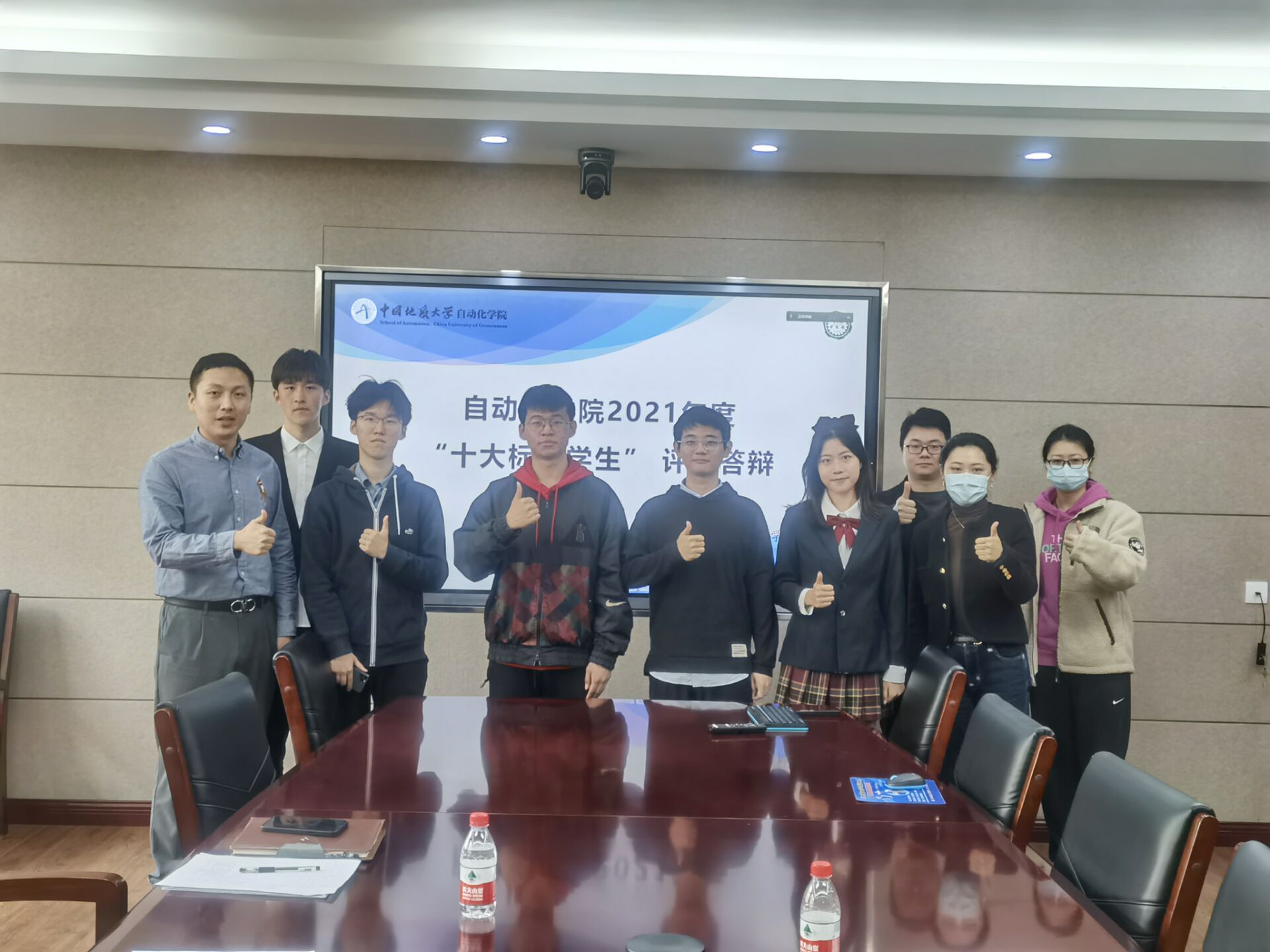 首先进行本科生十大标兵学生的答辩。杨豫龙同学从科研竞赛、学生工作、文体活动、创新创业四个方面进行了介绍;
