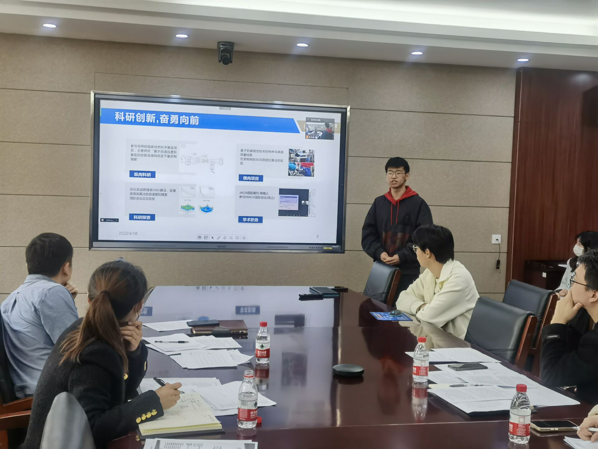 最后郑一楠同学从思想政治、课程学习、科研经历、竞赛奖项、学生工作几个方面对自己的经历进行了介绍,同时表达了对学校和学院的深深感谢。