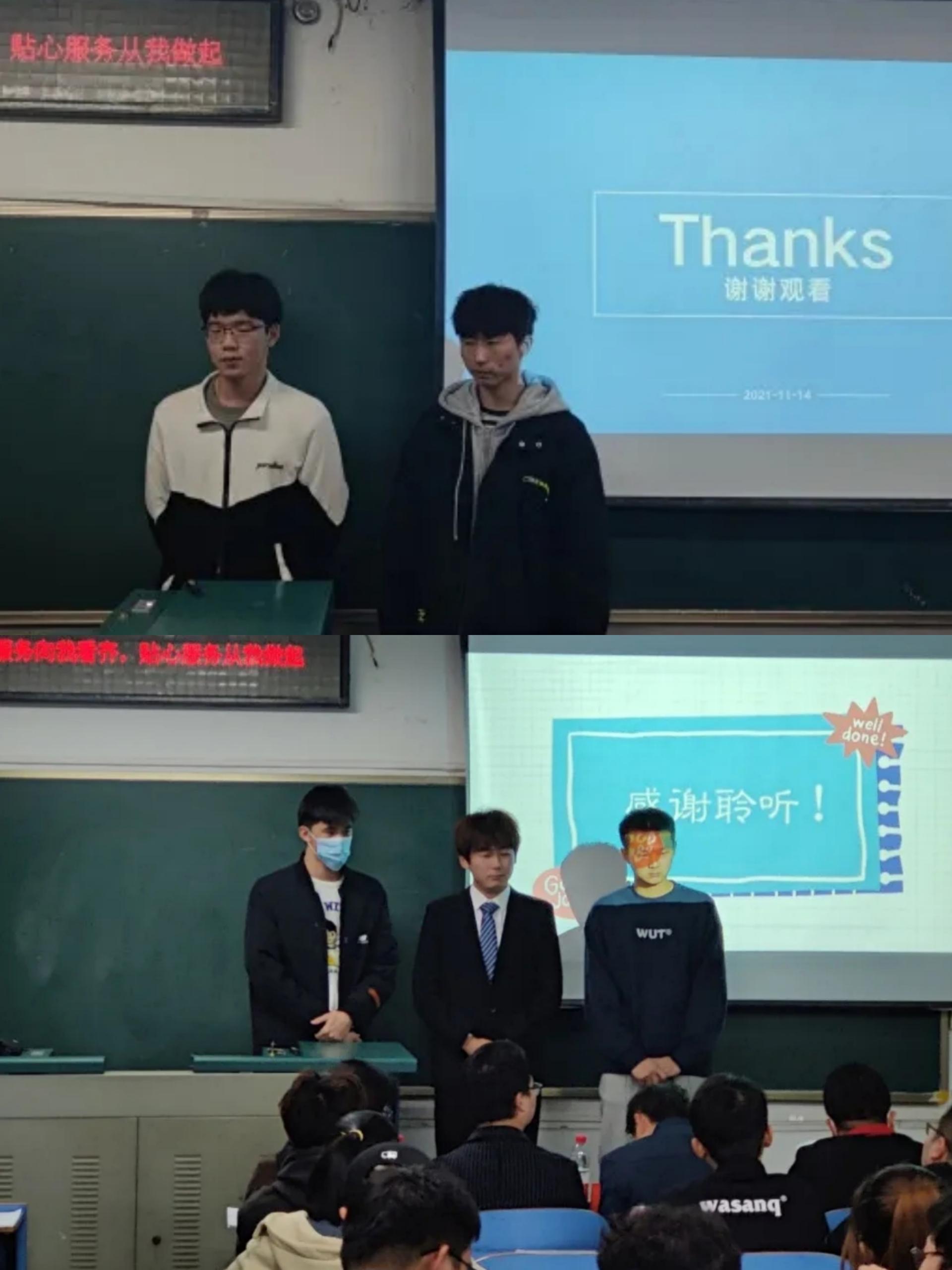 本次活动分为两个会场进行,采用“5+2”的答辩模式,即5分钟PPT展示和2分钟评委提问。答辩过程中,各班代表依次从班级简介、班风建设、班级成果展示及未来展望等方面对班级的特色活动与成果进行汇报展示,全面地介绍了过去一学年班级取得的各项成绩及创新点,展示了班级特色。评委们结合班级实际工作情况进行提问,并针对班级建设与管理提出了建议,各班在评委老师的指导下,受益匪浅。