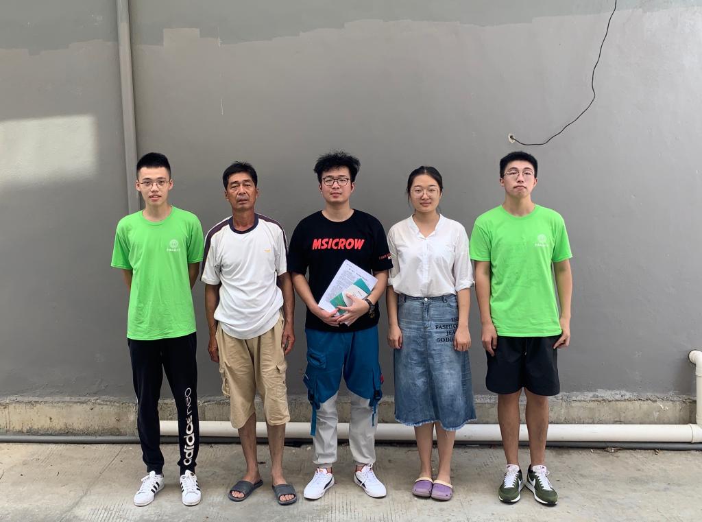 陈聃同学(左一)、张奕驰同学(右一)与陈明昱同学家庭合照