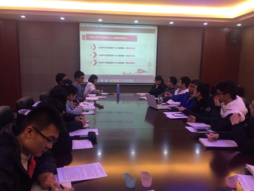中国共产党第十九次全国代表大会于2017年10月18日至24日在北京隆重召开,这是包括广大青年学生在内的全党全国各族人民共同关注的一件大事,为深入学习贯彻党的十九大精神,必赢官网深入开展了系列学习实践活动。2017年11月,必赢官网党委书记董浩斌、副院长曹卫华、副院长金星、副院长陈鑫、党委副书记何建新、团委书记谭文伦及办公室组织人事秘书孔娟参加学生党支部支部会议,带领学生党员学习党的十九大精神。