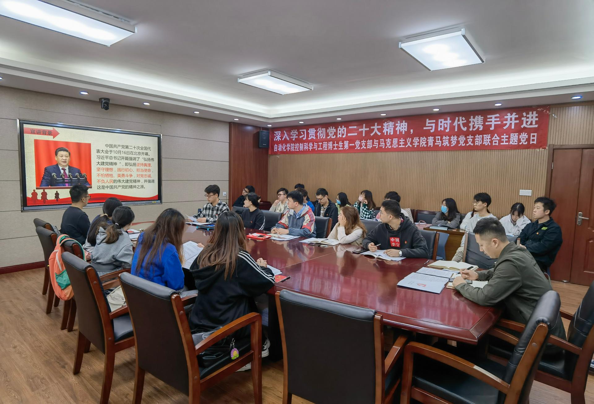 在对党的二十大报告进行集中学习后,青马筑梦党支部和博一党支部的党员代表积极发言,交流学习心得。同志们纷纷表示,要将党的二十大精神作为自身行动指南,坚定红色信仰,弘扬新时代中国特色社会主义思想,深刻领会学习党找到了“自我革命”这一跳出治乱兴衰历史周期律的第二个答案,以伟大自我革命引领伟大社会革命,永葆革命的斗志,永葆党的生机活力,树立民族自信、讲好中国故事,推动中国特色社会主义事业航船劈波斩浪、一往无前。
