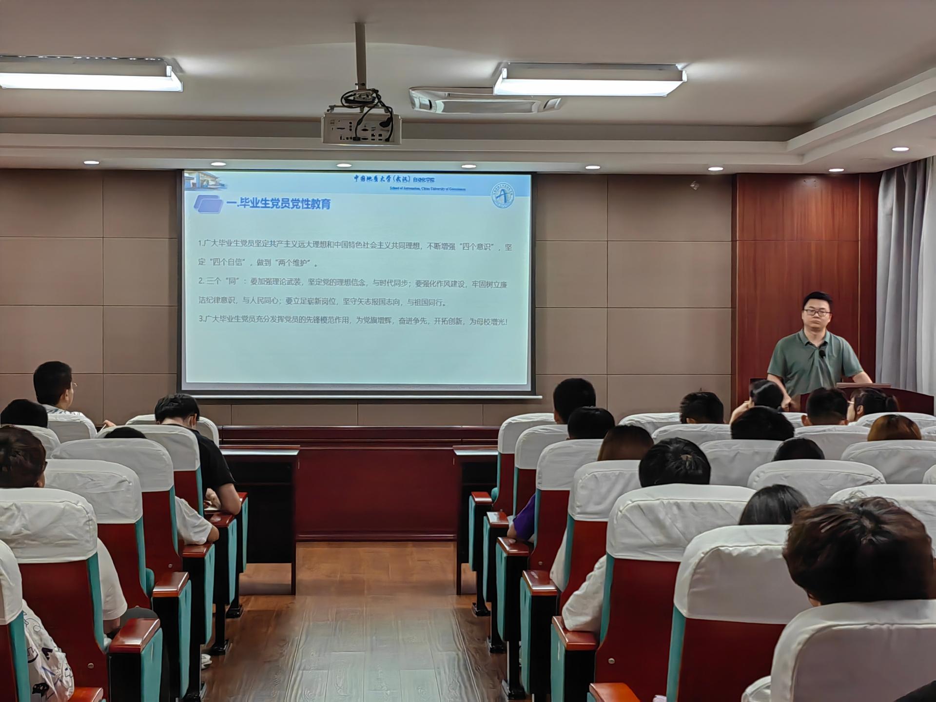 (通讯员 黄兰华 秦丹蕾)2022525日下午6点半,必赢线路检测3003no1毕业生党员大会在信息楼310报告厅召开。首先,黄兰华老师给毕业生党员们上了一堂热情洋溢的党课,随后介绍了毕业生党员的组织关系转接流程以及相关注意事项。