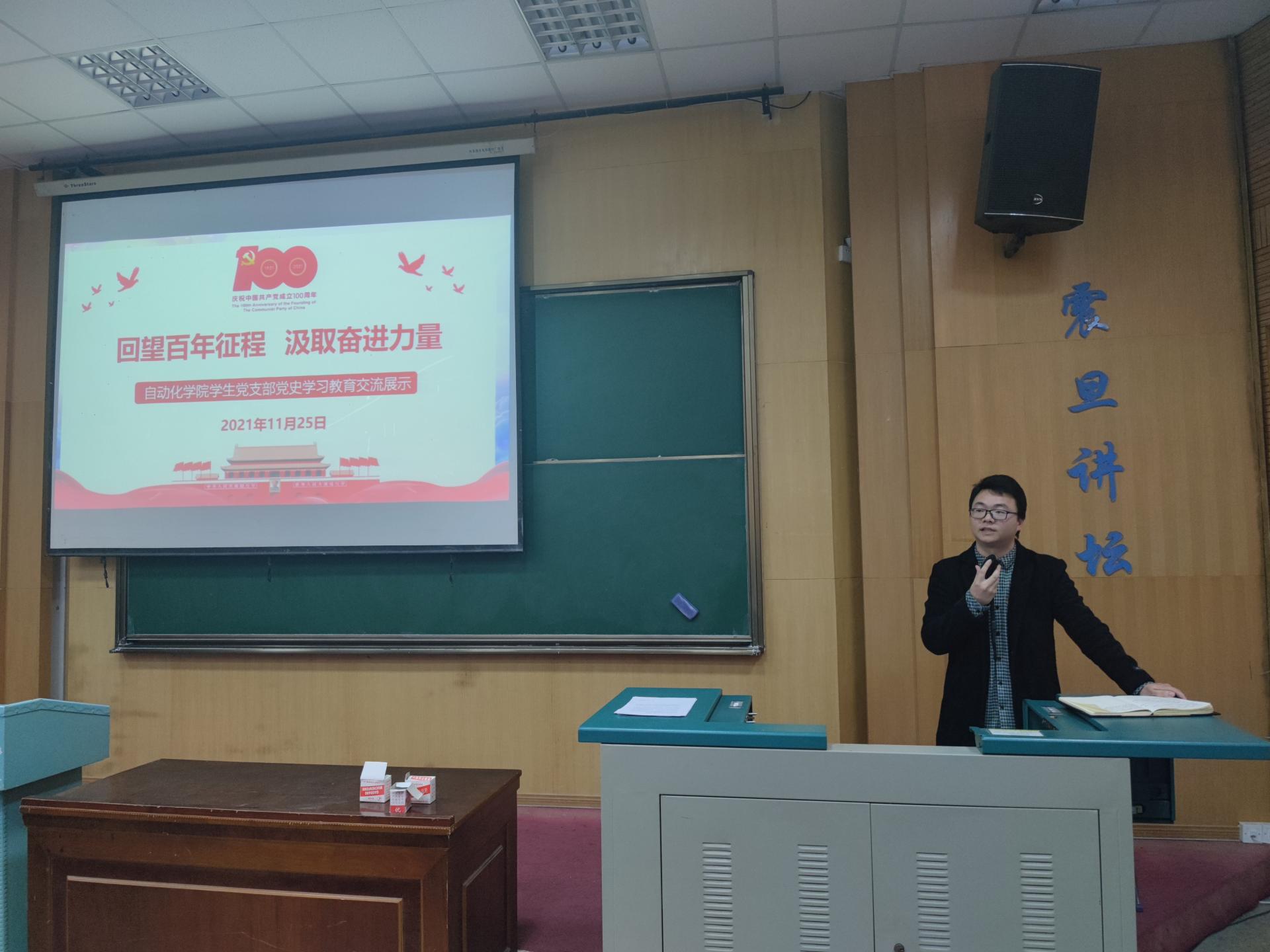 在党史学习教育交流展示环节,各党支部介绍了一系列形式多样、内涵丰富的党史学习教育活动。读党史,追忆峥嵘岁月,砥砺初心使命;参展馆,追寻革命先辈足迹,继承光荣传统;讲党课,回顾百年党史,汲取奋进力量。控制工程硕士生第二党支部赴“中央农民运动讲习所”实地参观学习,控制科学与工程博士生第一党支部“云游”八七会议会址,传承红色基因,赓续共产党员精神血脉。控制科学与工程硕士生第二党支部参加“探寻百年历程,传承红色基因”校园定向跑活动,感受党的百年奋斗历程。