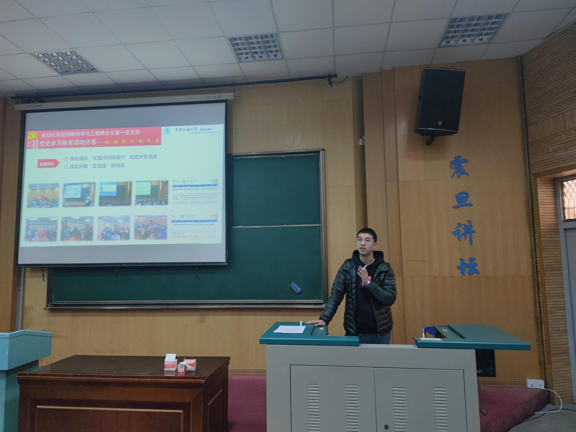 在支部建设特色经验分享环节,自动化专业大学生第二党支部针对更新党员信息结构表耗时耗力这一问题,充分发挥专业特长,完善党建系统,提高信息查询和更新的效率。控制科学与工程博士生第一党支部书记郭琳炜同志分享了党支部严格落实“七个有力”,申报党建示范样板支部的经验。在主题党日活动中,党支部积极探索党小组工作模式,同时加强党员与群众交流联系,提升支部影响力,增强党支部的战斗堡垒作用。