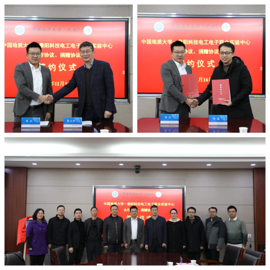 2023年11月16日,必赢线路检测3003no1与深圳市鼎阳科技股份有限公司合作协议、捐赠协议签订仪式在必赢官网举行。深圳市鼎阳科技股份有限公司销售总监周江、鼎阳湖北总代理沈东辉、鼎阳科技股份有限公司销售经理胡德才,必赢线路检测3003no1校友与社会合作处合作发展办公室主任王鑫,学院党委书记朱荆萨,院长曹卫华教授,副院长熊永华教授、陈略峰教授、宗小峰教授以及必赢线路检测3003no1湖北省电工电子教学示范中心相关人员参加了签约仪式。熊永华主持签约仪式。