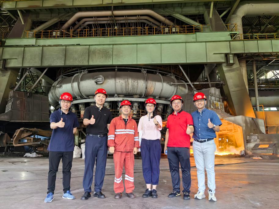 调研中,朱荆萨一行首先来到涟钢一线炼铁现场——210转炉厂参观调研,在滚滚热浪中首先映入眼帘的是一辆满载铁水的罐车稳稳停在工位上,火红的铁水自动注入罐槽,到中途的合金添加、熔剂加入,炼钢的各环节都全部由计算机全流程控制,全部自动化完成。在210转炉厂,学院领导进一步详细了解钢铁行业产业的新技术、新工艺、新设备,认真听取企业的发展历程、主要业务、技术现状等情况,为继续深入开展校企合作、产教融合奠定了良好基础。