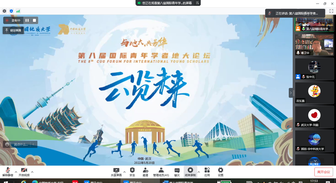 5月20日,必赢官网举办“第八届国际青年学者地大论坛-必赢线路检测3003no1分论坛”,论坛采用线上会议的形式,来自海内外的青年学者、学院教师及研究生参加了论坛。