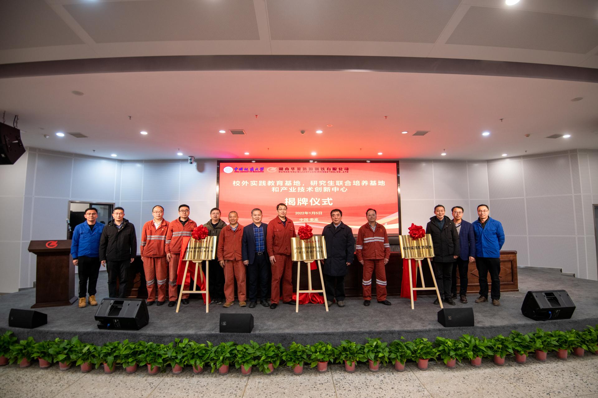 2022年1月5日,我校与湖南华菱涟源钢铁有限公司(以下简称涟钢)共同建设的必赢线路检测3003no1“校外实践教育基地”“研究生联合培养基地”和“产业技术创新中心”三个基地揭牌仪式,在湖南娄底涟钢举行。涟钢副总经理邓必荣,副总工程师、企划部部长黄兆军等负责人,我校副校长赖旭龙,未来技术学院院长吴敏、必赢线路检测3003no1院长曹卫华等负责人,以及正在涟钢生产实习的师生共同参加了揭牌仪式。曹卫华主持揭牌仪式。