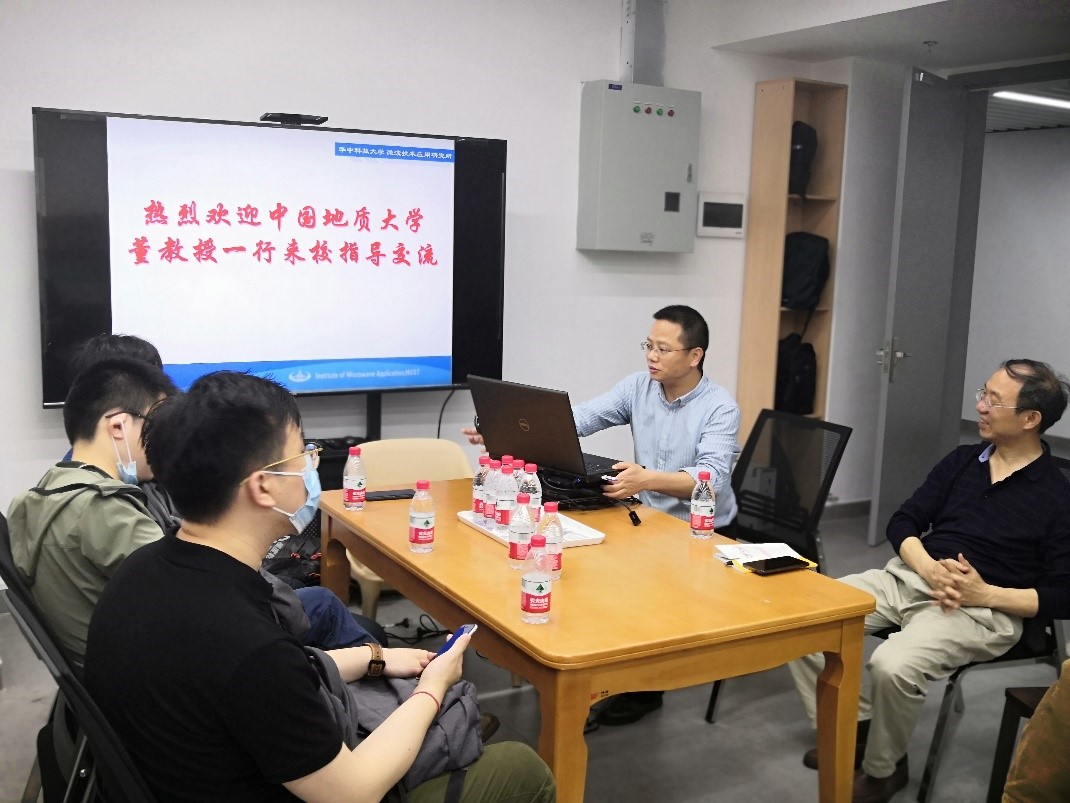 2021年5月14日,必赢官网党委书记董浩斌教授带领“智能地球物理探测仪器与信息处理”团队葛健、刘欢、宋恒力等老师及学生一行8人,到华中科技大学武汉光电国家研究中心调研交流。武汉光电国家研究中心依托华中科技大学,是科技部首批批准组建的6个国家研究中心之一。该中心团队支部书记、湖北省教学名师姜胜林教授,微波技术应用研究所所长吴国安教授及其科研团队成员,热情地接待了董浩斌一行。