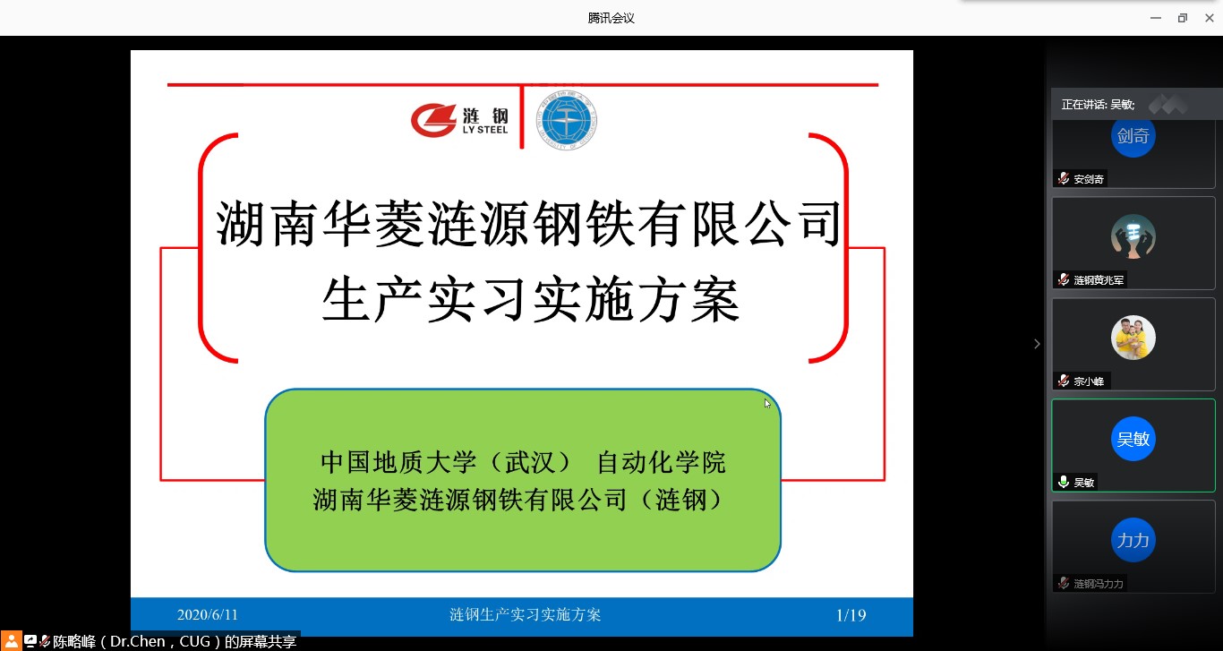 6月11日上午,“涟钢实践实习基地”建设工作讨论会线上举行。湖南华菱涟源钢铁有限公司(涟钢)副总工程师黄兆军、颜跃华、冯力力、肖朝晖,必赢线路检测3003no1院长吴敏、常务副院长曹卫华、副院长宗小峰以及安剑奇、陈略峰等相关负责人参加了会议。