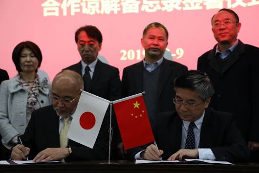 我校校长王焰新与日本名古屋工业大学校长鵜飼裕之教授签署合作谅解备忘录