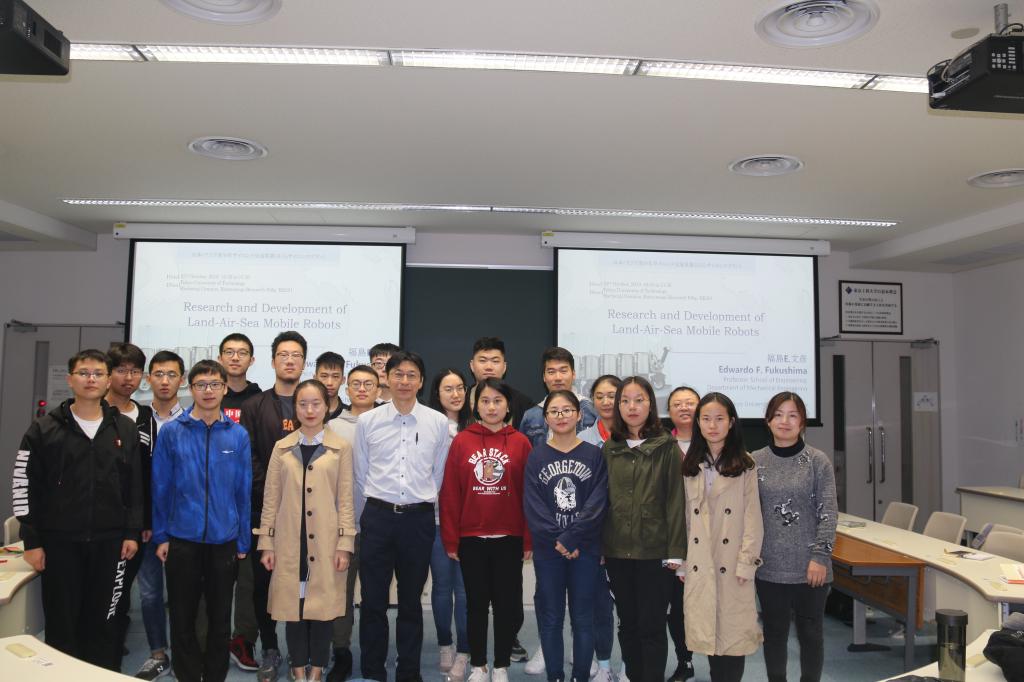 本次交流的日方组织单位东京工科大学位于东京都八王子市,是同时拥有文理、医疗、艺术等系的私立理工类综合性大学,为访问团组织了丰富的学术交流活动。东京工科大学福岛 E.文彦教授主讲的“海陆空三栖机器人研究”、东京工业大学计算机系龟田教授主讲的“东京工科大学的人工智能提议”、东京工科大学人工智能研究会寺野教授主讲的“人工智能现状和展望”、中央大学渡边俊彦名誉教授主讲的“全球环境下的日本农业”等一系列学术报告,给访问团留下了深刻印象。访问团参观了8个学科实验室,研究领域涉及记忆金属、控制理论及其应用、人与机电系统研究、图像解析研究,以及人工智能、机械学习、深度学习研究等多个领域。