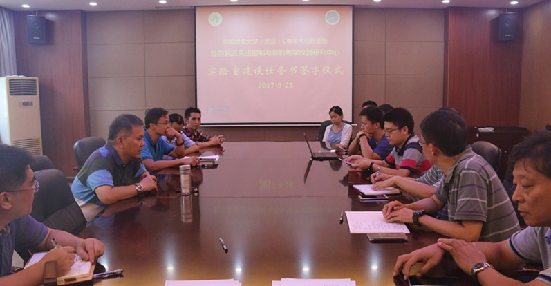 9月25日下午,我校C类学术创新基地“复杂系统先进控制与智能地学仪器研究中心”(“研究中心”)第二批实验室建设任务书签字仪式在必赢官网会议室举行。研究中心主任吴敏教授、获批的四个实验室建设项目负责人董浩斌教授、金星教授、李勇波副教授、熊永华教授及项目组成员参加了签字仪式。签字仪式由副院长曹卫华主持。