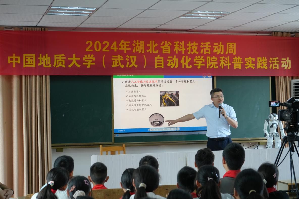 授牌仪式结束后,刘振焘老师带来《走进智能机器人的世界》专题科普讲座。刘老师从生活中的智能化及其入手,深入浅出的为孩子们介绍了各类不同智能程度的机器人,在讲解最后,伴随着机器人的舞动,孩子们发出阵阵欢呼声,将课堂推向了高潮。同时“初光”青年志愿服务团队成员同步为六年级的学生们带来“玩转智能车”的科普实践活动。通过动手制作智能小车,让学生们在动手实践中体验科技的魅力。