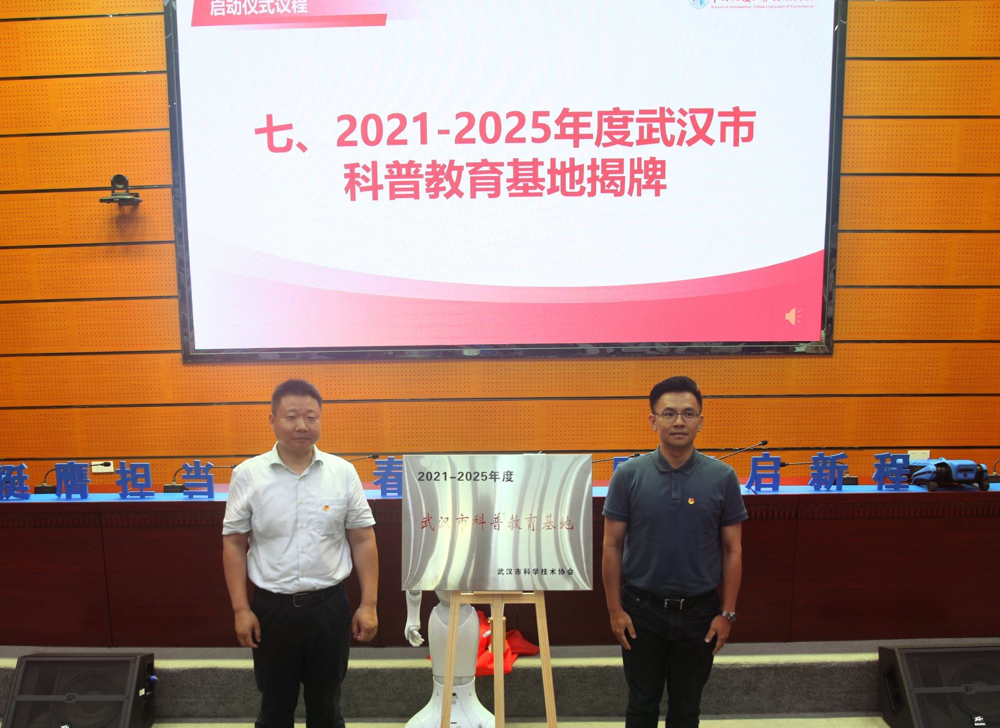 科学技术发展院副院长肖平和必赢线路检测3003no1副院长陈略峰共同为2021-2025年度武汉市科普教育基地揭牌。