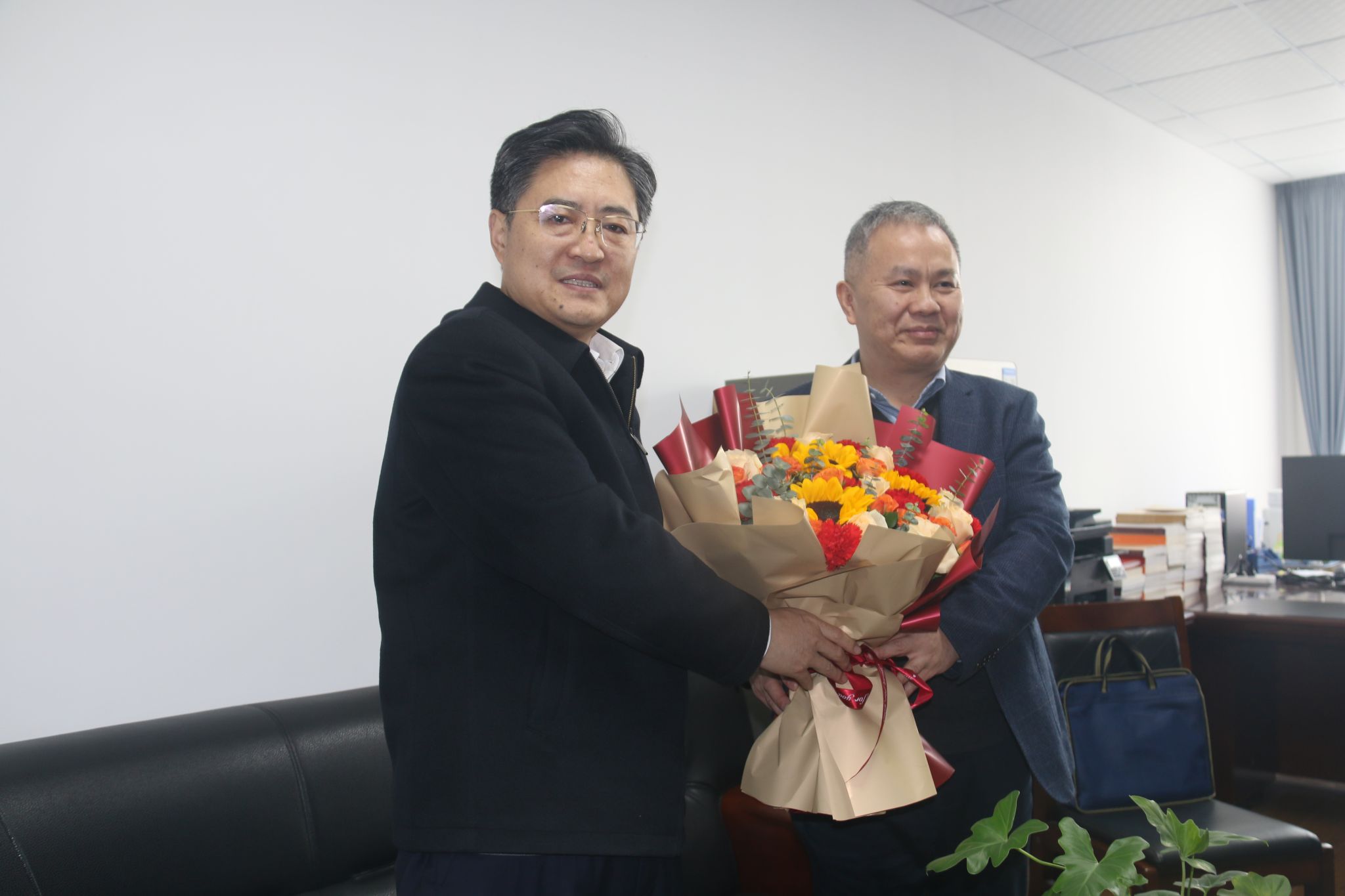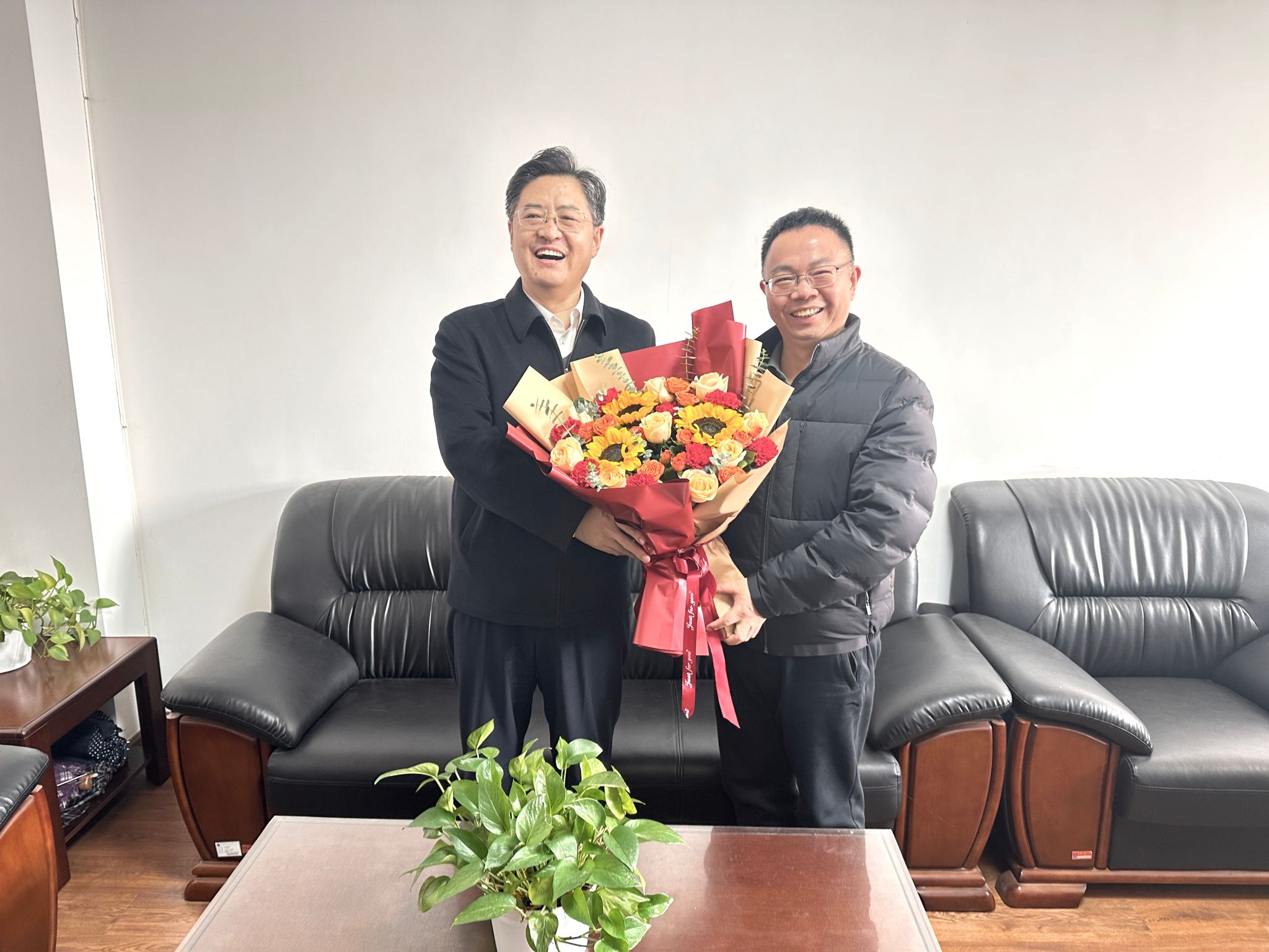 徐艳国书记、唐忠阳书记一行与吴敏教授、何勇教授进行了深入交流,详细了解了两位专家的工作进展和生活状况,对两位专家一直以来为学校、学院发展、学科建设和人才培养方面作出的突出贡献表示崇高敬意,对他们在教学科研上取得的成果表示祝贺,并向他们致以节日的问候和美好的祝福。