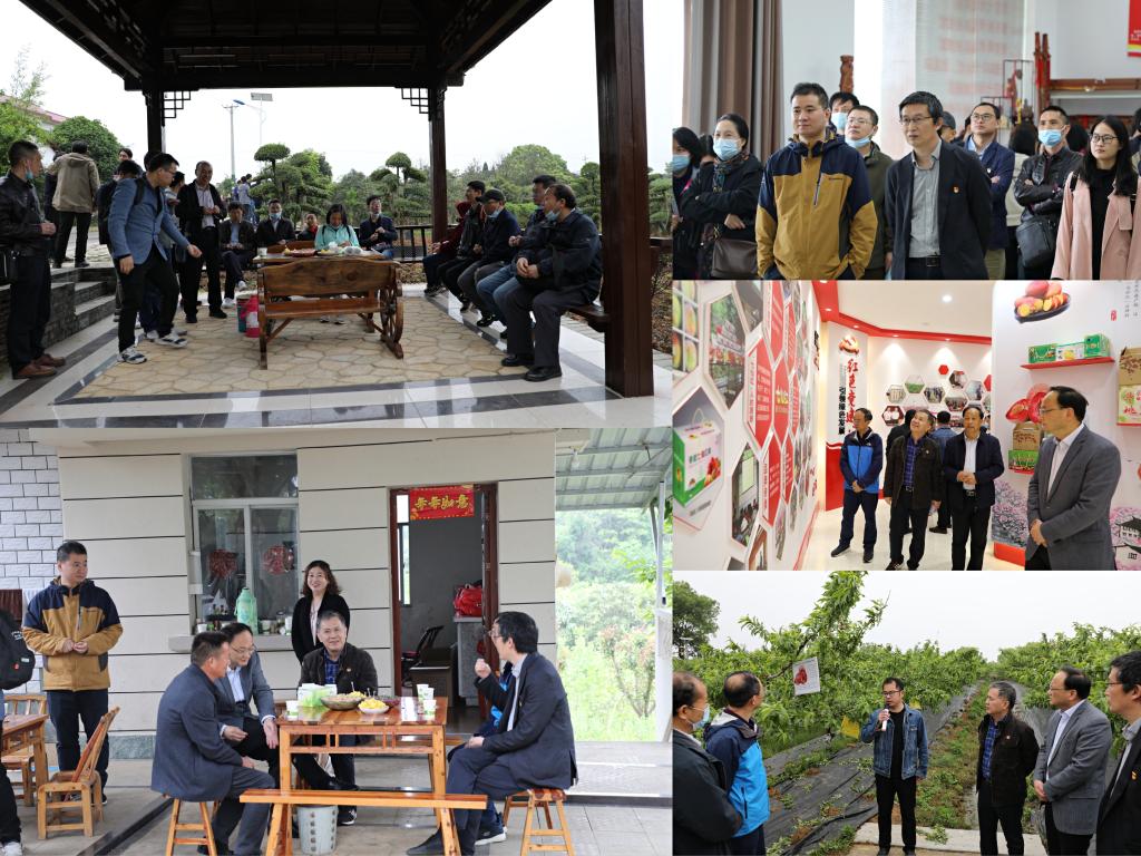尽管下着淅淅沥沥的雨,老师们还是饶有兴致踏上行程,经过2个小时的车程终于到达目的地孝昌县。学院老师们先后参观了周巷镇的梦里花园创客中心、十里苗木长廊、“七仙红”桃产业基地,新龙村,获评“2019年全国美丽乡村路”的孝昌观双旅游公路,小悟乡的田堂村、刘震将军纪念馆,王店镇韵鹤生态园和新岗村。