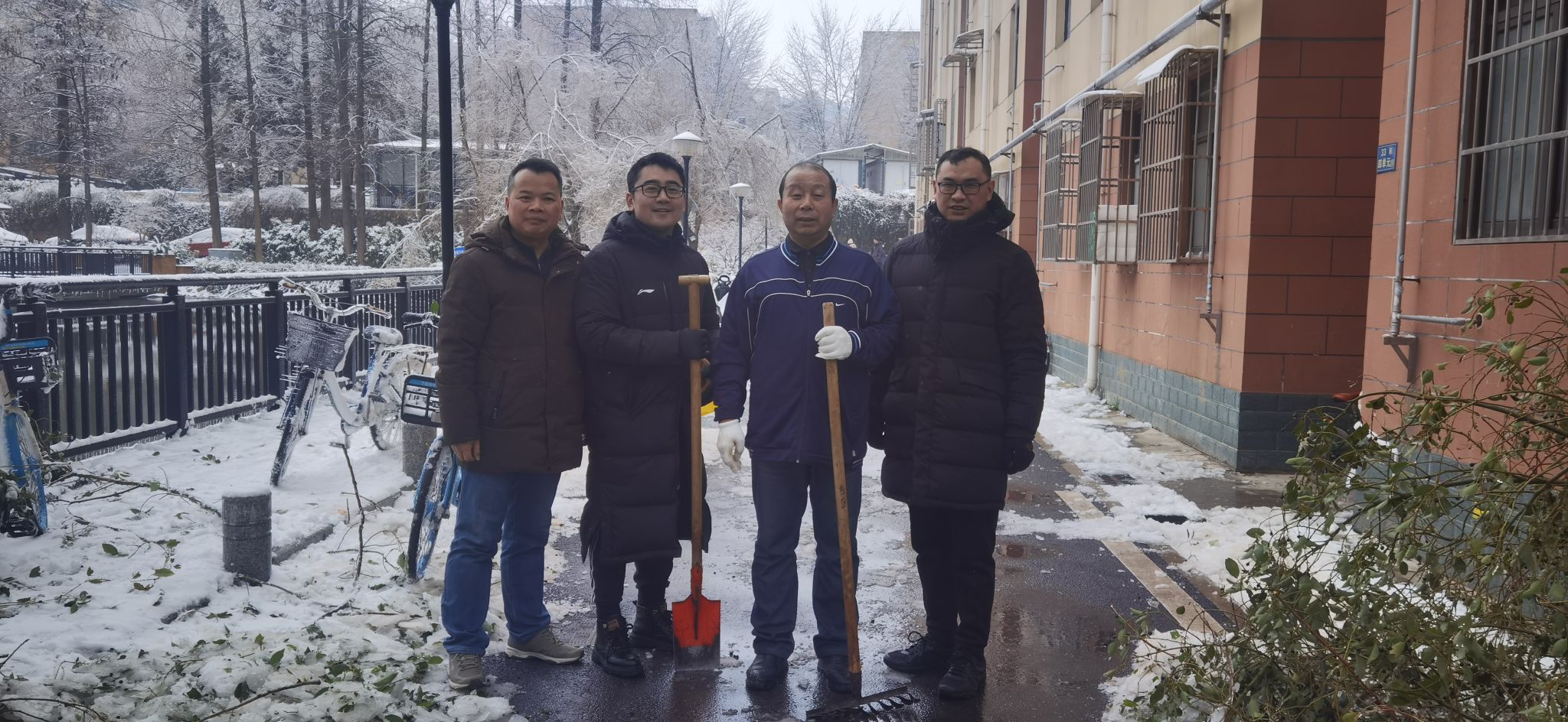 2月5日,受雨雪冰冻灾害天气影响,学校吹响“奋战冰雪”集结号,全力开展除冰清障应急处置工作。必赢线路检测3003no1四名教工党员积极响应,参与到扫雪除冰工作中。