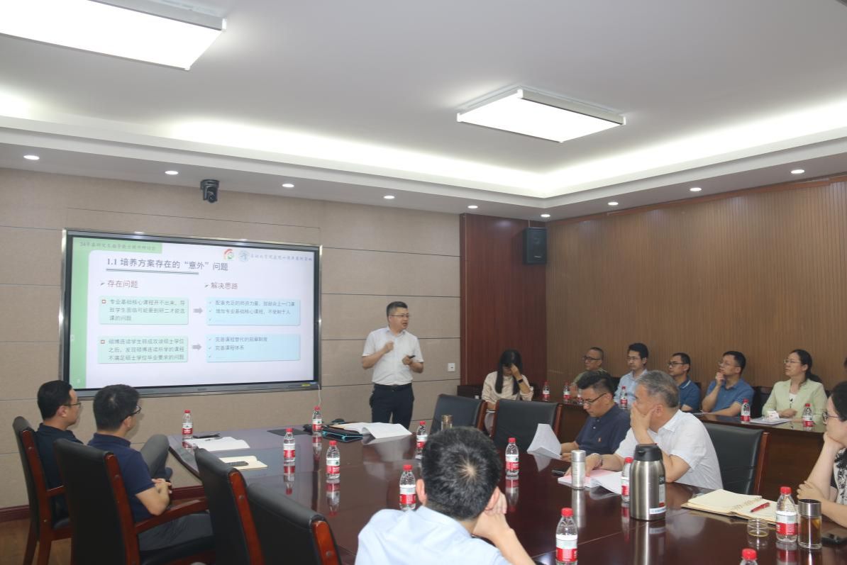 针对培养方案修订问题,刘振焘、惠亚娟、翟超老师对培养方案、课程思政、教学内容、文献综述以及排课中存在的难题“抛砖引玉”,提出问题。吴敏教授从培养方案的整体框架出发,结合自身教学经验,他指出研究生课程体系是一个深层次的问题,课程体系的编排需注重其内在的逻辑性和连贯性,确保前后课程的相互衔接,要时刻反思“通过这门课能学到什么?”,他强调要与时俱进,通过改革使课程内容与现代社会发展相适应。课程体系安排需合理,注重课程的前续后续性,以确保研究生教育质量的不断提升。针对与会老师提出的课程思政存在的问题,院党委书记朱荆萨指出,要重视专业知识与思政教育的融合,重视思政内容的设计和思政效果的评估,通过精心设计的教学内容与方法,将思政元素巧妙地融入各类课程中,培养学生的道德品质和良好的社会责任感。