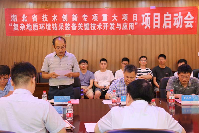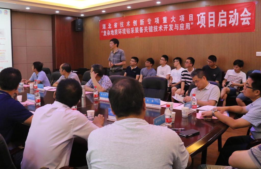 2018年7月13日,湖北省技术创新专项重大项目“复杂地质环境钻采装备关键技术开发与应用”项目启动,必赢官网曹卫华教授作为技术负责人汇报了该项目的实施方案。湖北省科技厅高新处、湖北省地质局科技处、湖北省城市地质工程院、必赢线路检测3003no1、中国地质装备集团有限公司等相关单位的领导、负责人及项目组其他成员参加了会议。