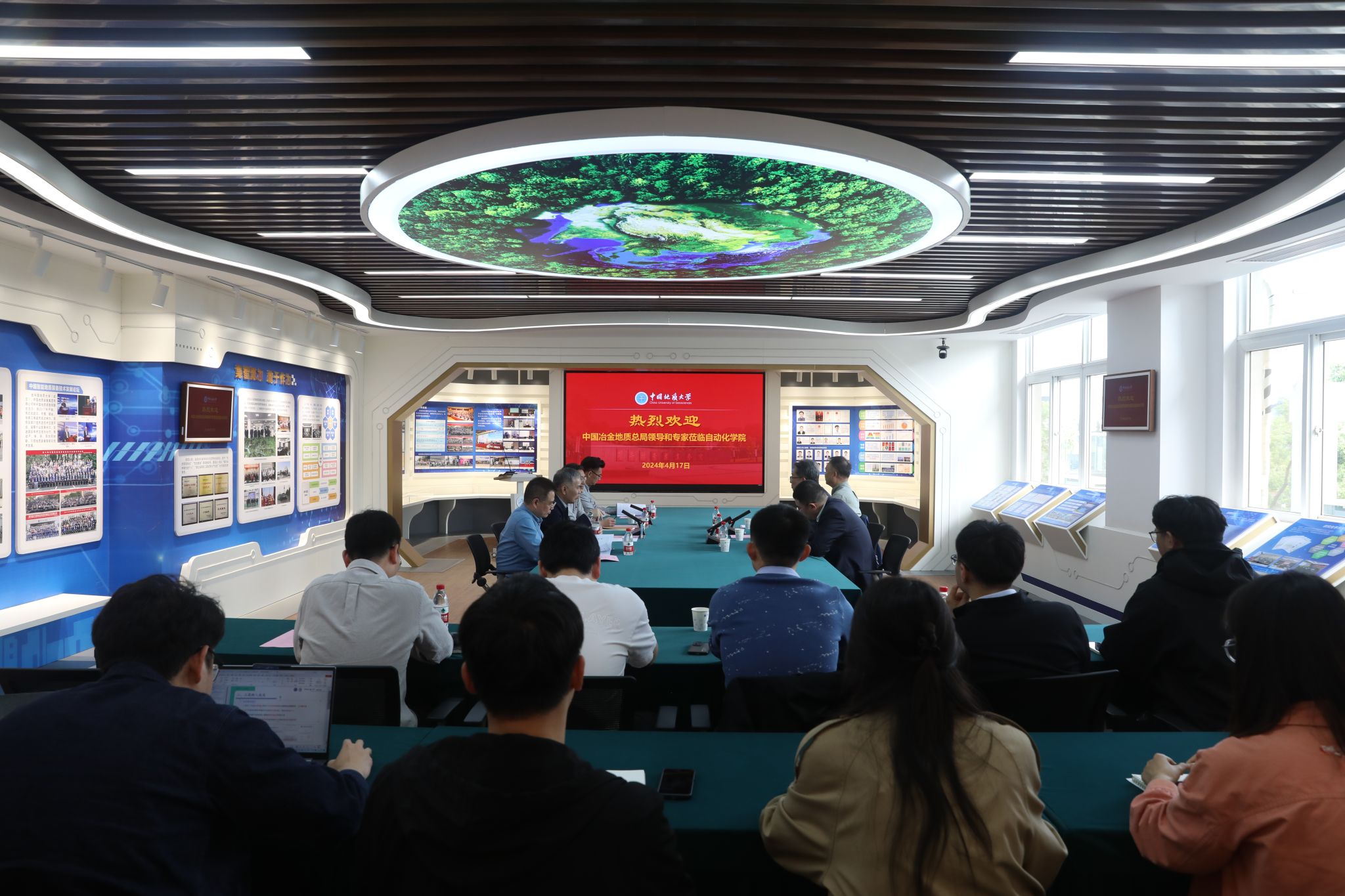 曹卫华院长带领王文军局长一行参观了学院科研实验室,介绍了地质钻探、海洋资源勘探、智能机器人等领域的研究成果和科研平台。