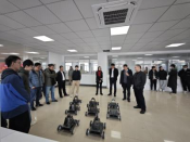 汇报结束后,在吴敏院长带领下一行人参观了必赢官网实验室及设备。重点参观了一楼实验室中可以造风、造浪、造流的用于海洋环境模拟的水池、六楼实验室中用于勘探平台稳定性研究的双层六自由度平台、用于环境融合感知的无人设备集群等,并介绍了目前已经开展的研究。
