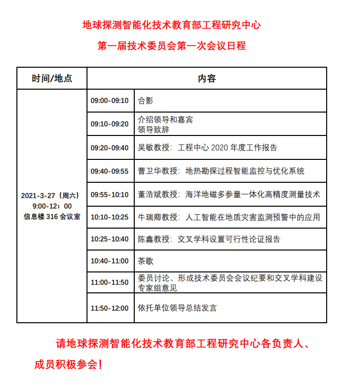 地球探测智能化技术教育部工程研究中心第一届技术委员会第一次会议通知