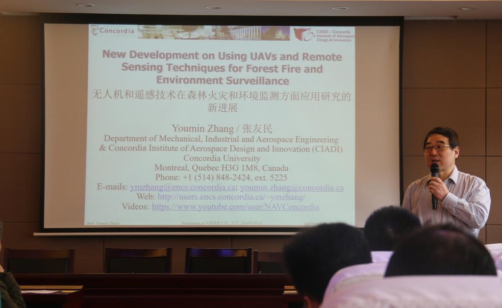 3月8日,加拿大康考迪亚大学张友民教授来必赢官网作了题为《New Development on Using UAVs and Remote Sensing Techniques for Forest Fire and Environment Surveillance》的学术报告。