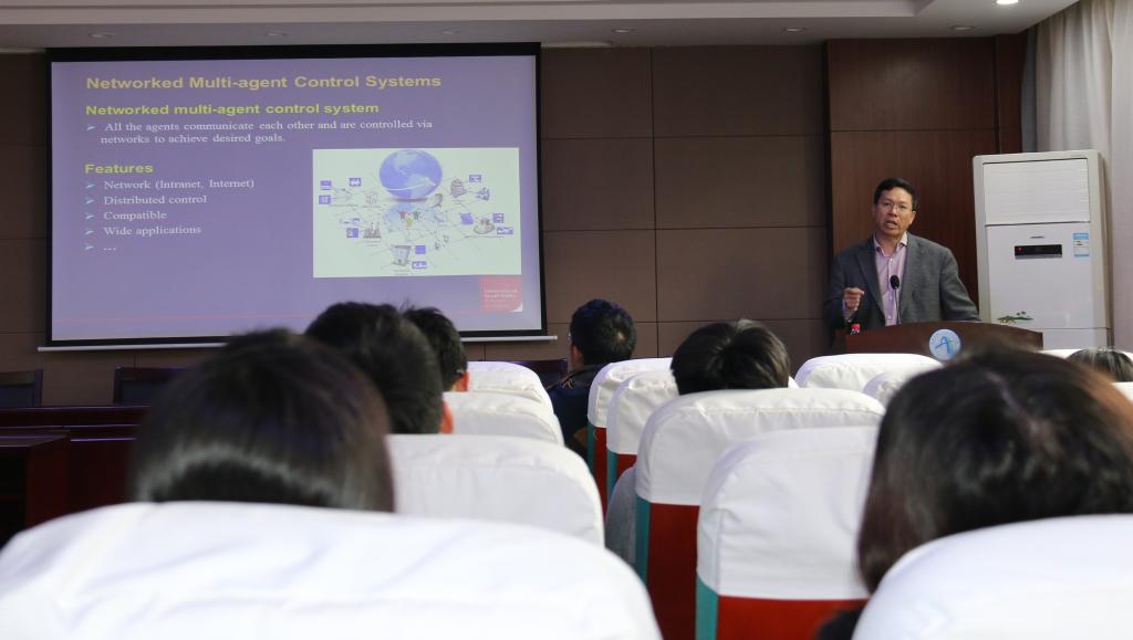 4月10日,英国南威尔士大学刘国平教授来必赢官网作了题为《网络化多智能体预测控制》的学术报告。
