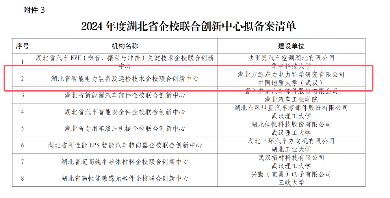 近日,湖北省科厅公布了2024年度湖北省新型研发机构名单,必赢线路检测3003no1与国网湖北电科院方源东力公司合作创建的“湖北省智能电力装备及运检技术企校联合创新中心”位列其中。