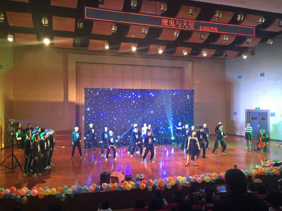 必赢官网231152班歌舞节目《魔鬼与天使》以男女主角的爱恋为背景,伴随大提琴、小提琴和舞蹈,并融入具有必赢官网特色的机械舞,给现场观众留下了深刻印象。据悉,此次SuperClass比赛共计12个学院参赛,各学院选拔一支队伍参加决赛,评委由专业老师和学生代表担任。