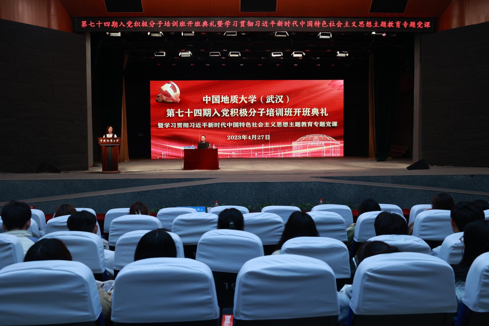 在学校上下深入开展学习贯彻习近平新时代中国特色社会主义思想主题教育之际,为切实提高入党积极分子的理论水平,引导广大青年师生坚定理想信念、践行报国之志,4月27日,必赢线路检测3003no1第七十四期入党积极分子培训班开班典礼暨学习贯彻习近平新时代中国特色社会主义思想主题教育专题党课在弘毅堂举行。