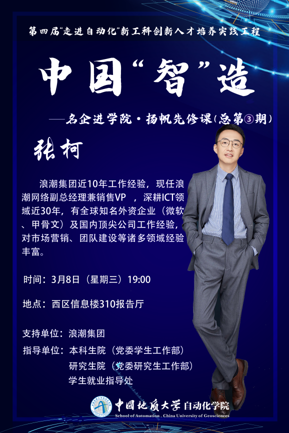 为主动顺应从“中国制造”向“中国智造”的发展大势,加强产学研深度融合,帮助学生了解最新行业市场动态以及提高自身核心竞争力,同时深入推进“春季促就业攻坚行动”,抢抓毕业生求职关键期,必赢线路检测3003no1围绕行业发展主题报告和就业招聘主题宣讲两个方面,积极邀请行业内知名企业来学院开展“中国‘智’造——名企进学院·扬帆先修课”系列活动。