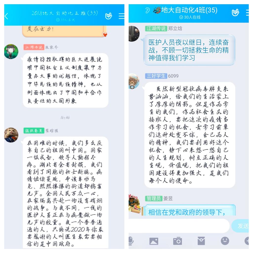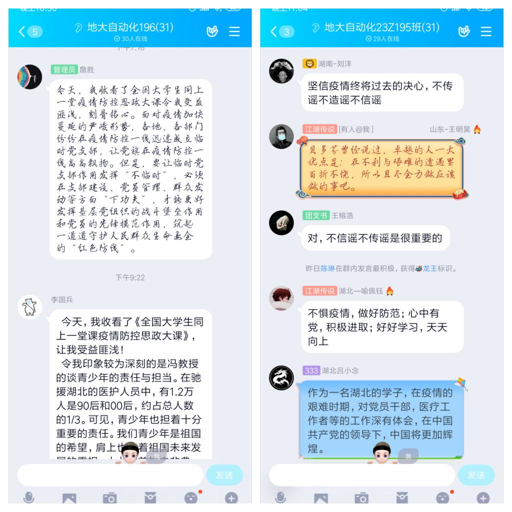为深入贯彻落实《教育部社科司关于组织“全国大学生同上一堂疫情防控思政大课”的通知》精神,引导广大学生增强“四个意识”、坚定“四个自信”、做到“两个维护”,坚定在以习近平同志为核心的党中央坚强领导下打赢这场疫情防控人民战争、总体战、阻击战的信心和决心,深刻认识中国抗疫彰显的中国共产党领导和中国特色社会主义制度的显著优势,必赢线路检测3003no1组织全体学生和思政老师于39日下午在线观看了“全国大学生同上一堂疫情防控思政大课”。这场特殊的思政直播课在学院师生中引发了热烈反响和讨论,以下是部分师生代表发自内心的感受和认识。