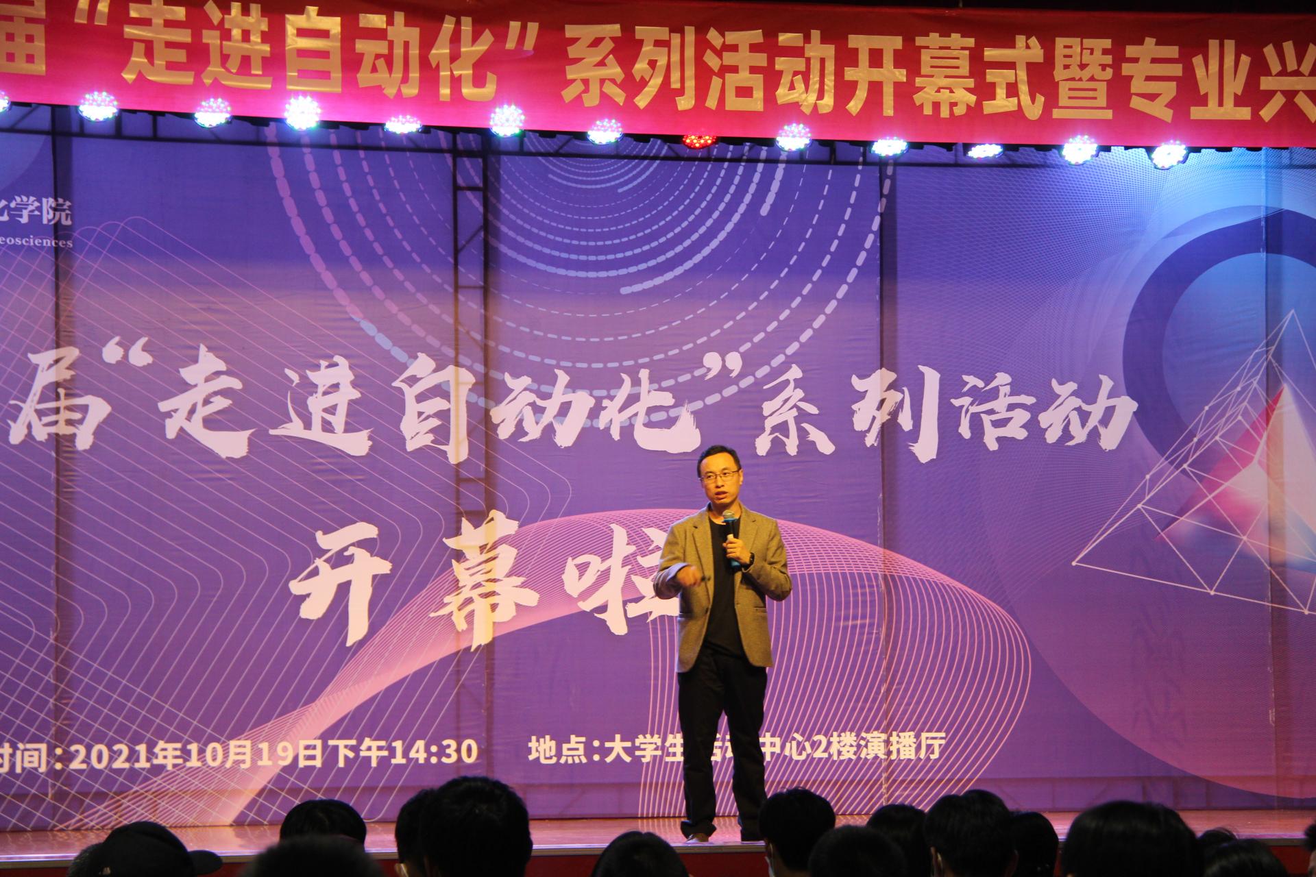 接着,他分析了自动化与人工智能融合发展趋势,以及自动化技术在应用领域的优势,并展示了课程体系图与测控技术与仪器专业设置、知识体系图。最后,他向同学介绍了专业的未来方向,并希望同学们成为更优秀的人。