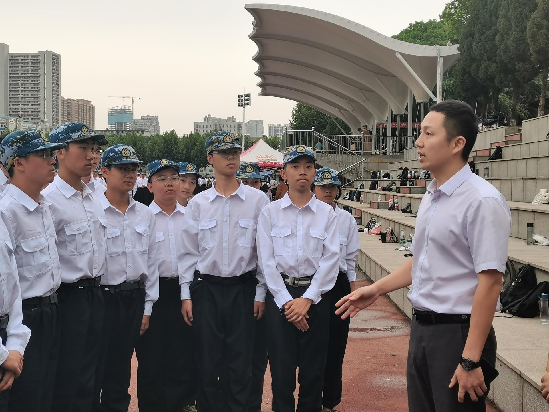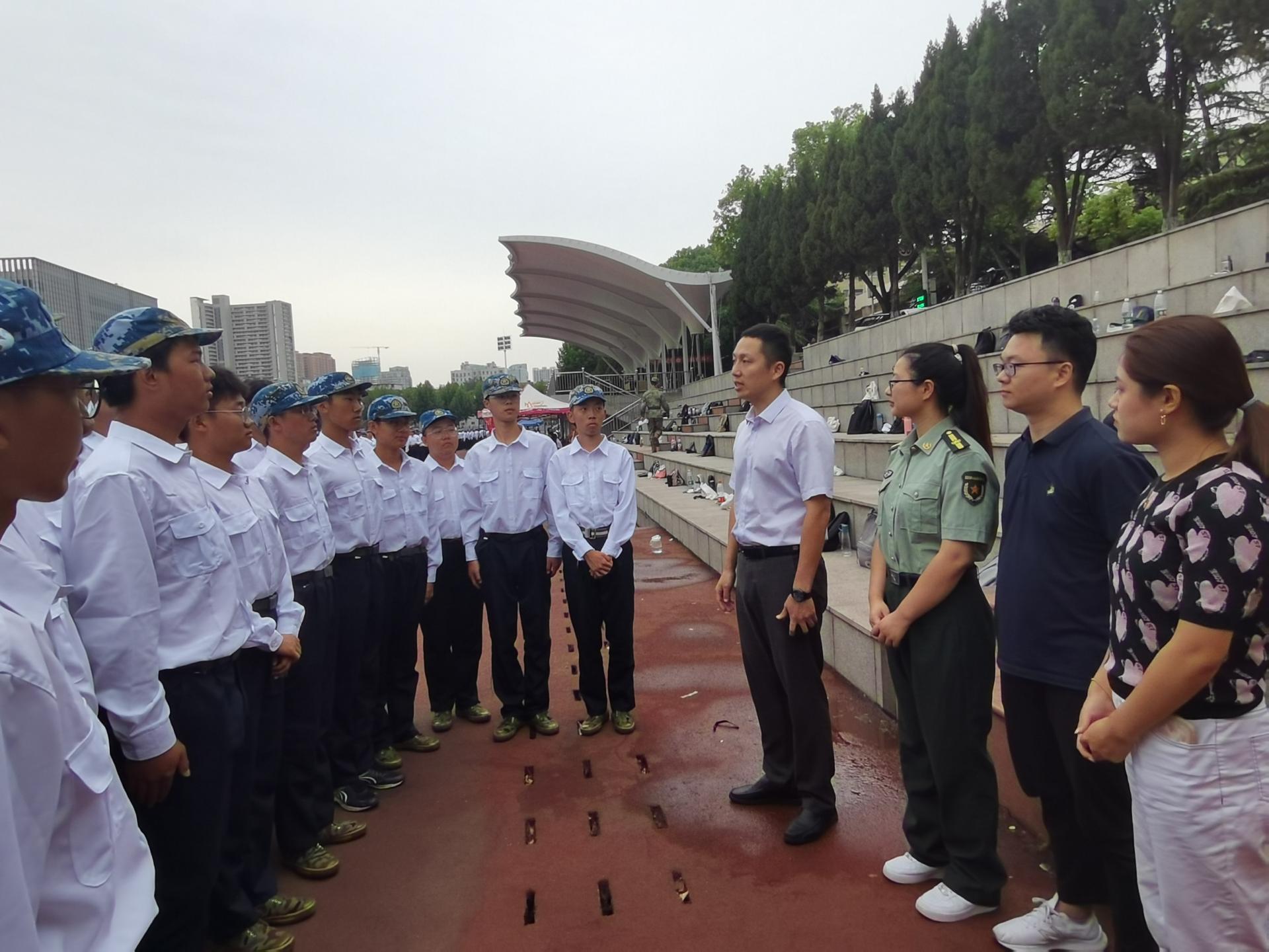 党委副书记王向东代表学院对精心筹备军训工作的各位军训教官表示诚挚的感谢,感谢了他们多日以来的辛勤付出和悉心教导,并对参训学生致以亲切的问候,称赞了他们在训练场上展现出的昂扬斗志和精神风貌,肯定了同学们这段时间以来的军训成果。他强调,军训是大学教育的必修课,是树立正确爱国主义观念、培养吃苦耐劳精神的重要一课,希望同学们在军训中锤炼青春意志、增强集体观念、培养纪律意识、提高综合素质,将“艰苦朴素,求真务实”的校训精神内化于心、外化于行。随后,王向东一行来到医疗服务点、学院志愿服务点等地,详细查看军训工作的后勤保障情况,确保为教官和参训学员提供良好服务以保障军训工作顺利完成。