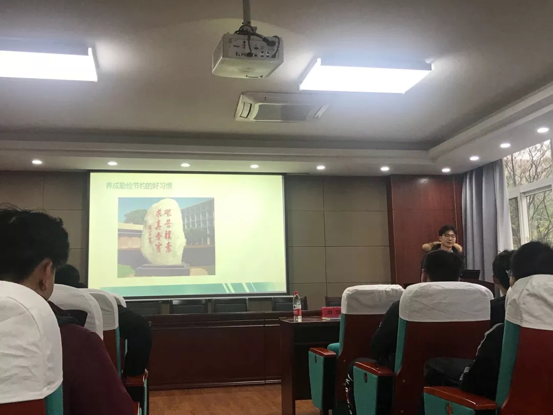 崔炳杰学长主要介绍了关于大学学习生活的规划,告诫同学们端正学习态度,提醒学生们寻找正确的学习方法;同时还强调体育锻炼,在提高学习质量的同时保持良好的身体素质。