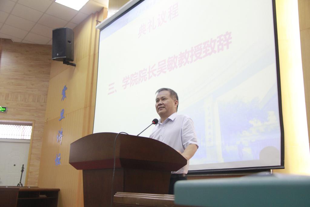 典礼在严肃庄严的国歌声中拉开帷幕。首先,院长吴敏教授代表学院向2020级本科和研究生表示热烈欢迎,并对学院的学术环境与师资力量进行简单概述。他说,必赢线路检测3003no1具有积极向上的文化氛围,希望新生们在这里努力学习、取得进步与成长。