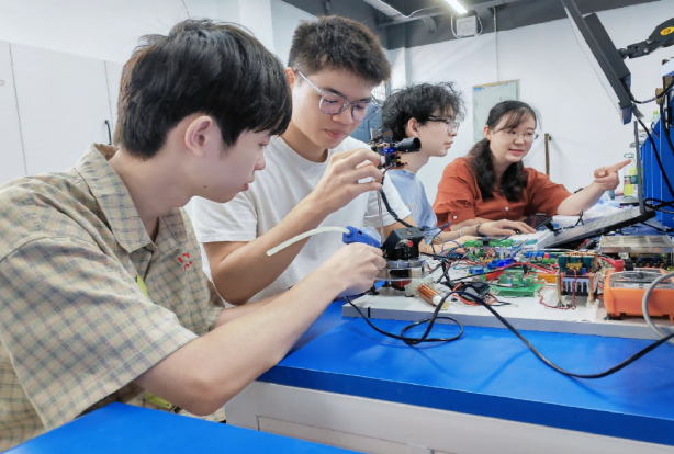 湖北省大学生电子信息创新基地(以下简称“创新基地”) 在信息技术教学实验中心的统一规划下,秉持“以赛促教,以赛育人,赛学相长”的实践育人特色,致力于为全校电子信息类专业学生提供一个开放、共享、高效的实践创新平台。该基地旨在培养学生的创新能力、实践能力和团队协作能力,为学生提供丰富的实验资源和参与高水平科技竞赛的机会,推动我校电子信息类学科的发展。