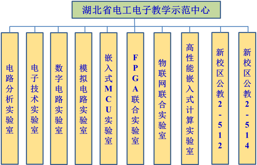 湖北省电子电工实验教学示范中心致力于为全校电子信息类专业学生提供一个开放、共享、高效的实践教学平台和丰富的实验资源,推动我校电子信息类学科的发展,实验室现有人员8人。实验室位于南望山校区和未来城校区,总面积900余平方米,共有10个实验室。这些实验室装备了先进的实验设备,设备台套数已经超过3000台套,为学生提供了宽敞、良好的实践场所和充足的实践资源。根据学校教学计划安排,实验室积极配合相关院系的任课老师,承担6个学院、9个专业的实验课程、课程设计和上机实习,年实验教学工作量超过30万人时数,覆盖学生超过5000人。