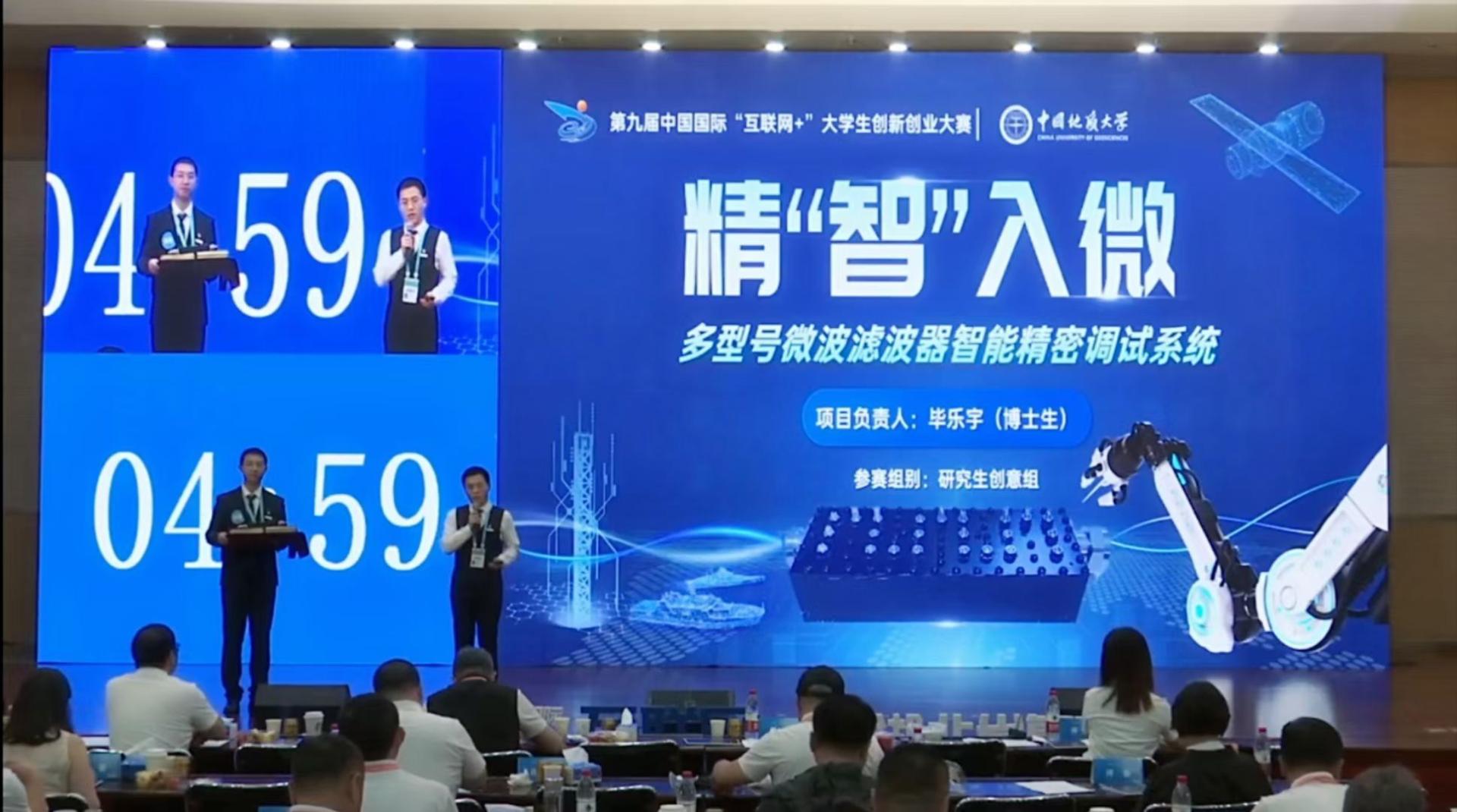 本届大赛中,由曹卫华教授、王向东老师和王艺霖老师共同指导的《“精‘智’入微——强适应性的微波滤波器智能精密调试系统》项目,荣获高教主赛道湖北省金奖,该团队由控制科学与工程专业的毕乐宇、郭琳炜博士作为主要负责人,任泰锟、杨文琳、徐扬、曾国依等来自多个学院、多学科交叉的本硕博生组成。该项目面向制造强国、网络强国、数字中国重大战略需求,针对微波滤波器性能调试过程依赖经验丰富调试工人,及“调不好、调不快、调不了”三大问题,交叉融合控制科学、微波通信、精密制造等多学科,形成了“识别-建模-优化”一体化的智能精密调试解决方案,实现了多型号滤波器的高效率调试,推动相关企业生产向高端化智能化转型,促进微波通信核心基础零部件智能制造。